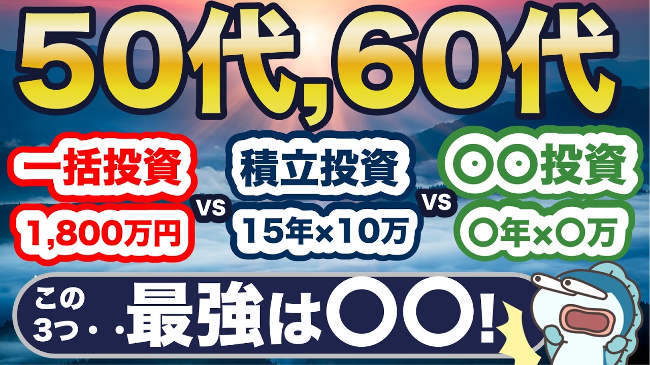 50代、60代の人は今こそ知りたい、1,000万円以上の差が開く可能性がある!積立と一括、さらに第3の投資法、どれがいいの?具体的な数字を使って徹底シミュレーション!どんな人がどの投資法に相性が良いか解説します!